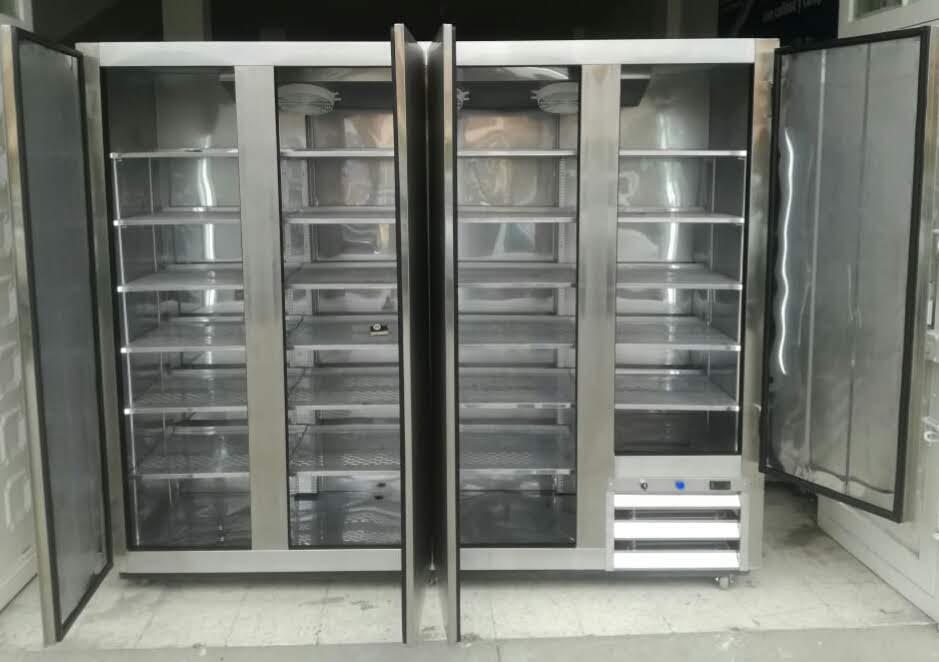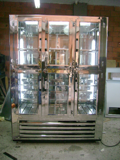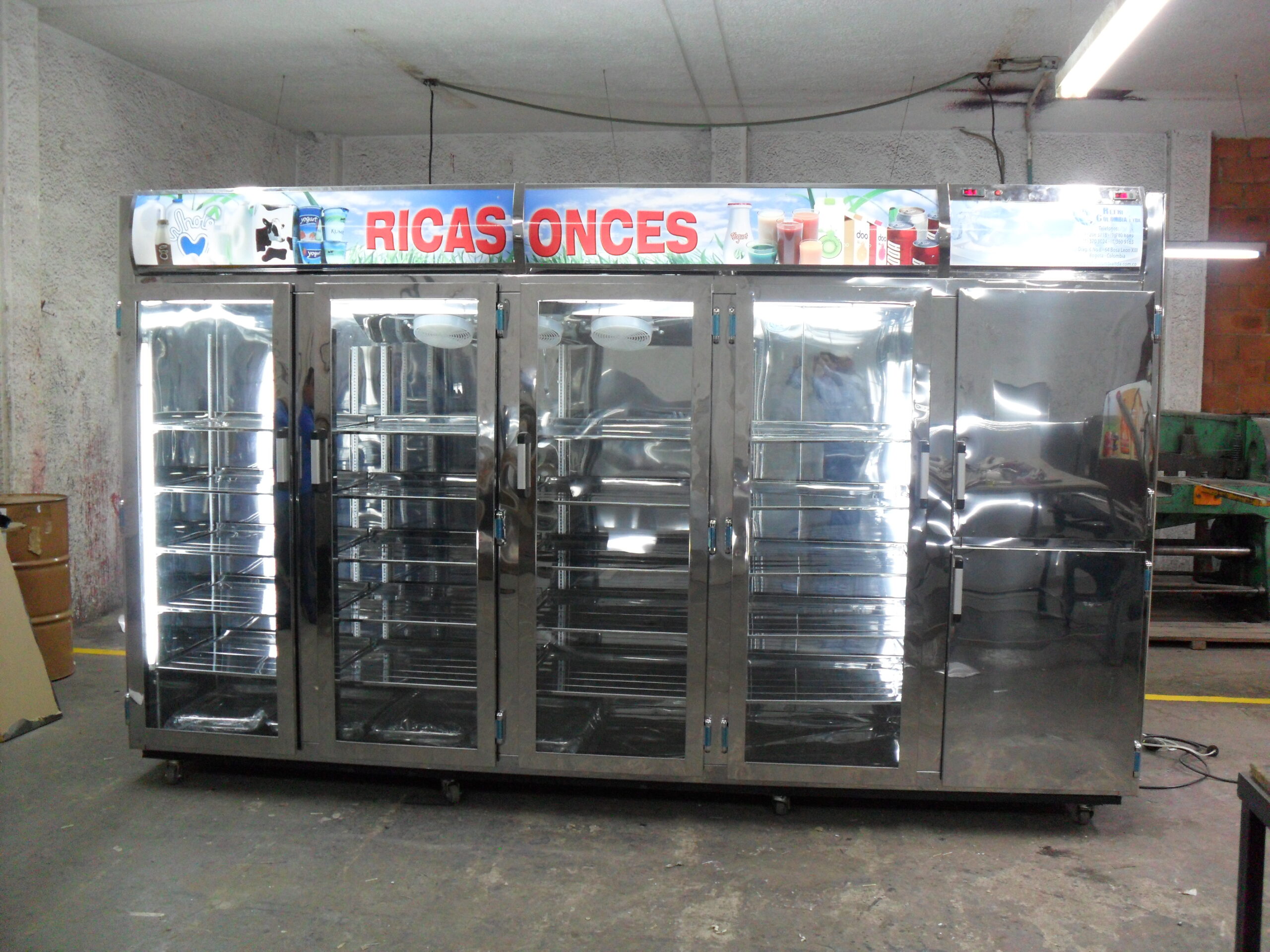 Las vitrinas verticales se fabrican según las medidas que requiera el cliente, no obstante por lo general se maneja una altura total de 2 mt, el fondo total del equipo contando el grosor de la puerta es de 80 cm, y el frente o ancho del equipo depende del espacio que disponga el cliente en su local comercial.