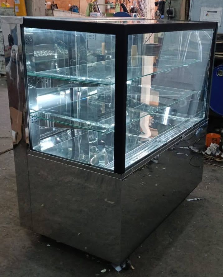 El diseño versátil de las pasteleras les permite ser fabricadas bien sea con vidrio curvo donde los entrepaños son de tamaños diferentes o con el diseño Cubik (totalmente cuadrado a partir de vidrio plano) donde los entrepaños son de igual tamaño.